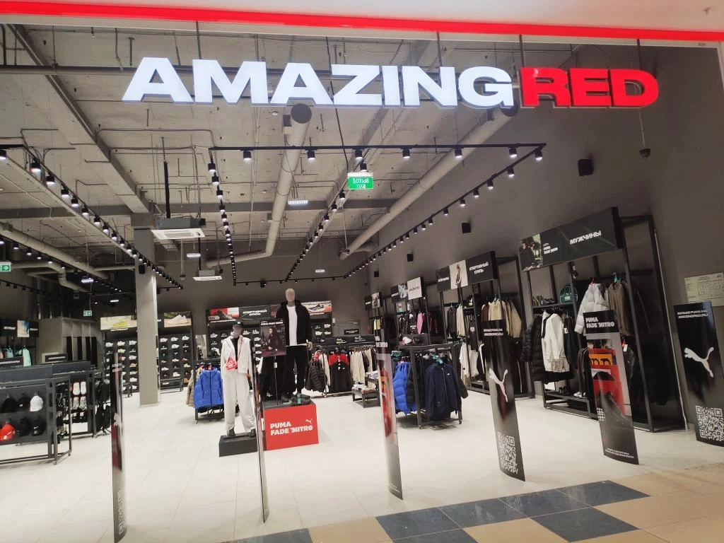 77-й по счету магазин собственной розничной сети AMAZING RED открылся в оренбургском ТРЦ «Мармелад». Он занимает площадь 360 кв. м. В магазине представлен весь актуальный ассортимент бренда: обувь лайфстайл, кроссовки, в том числе линейка PUMA Fade Nitro (старт продаж которой был дан в феврале 2026 года), спортивная и повседневная одежда, аксессуары (сумки, кепки и прочее). В структуре ассортимента свыше 75% занимают товары бренда PUMA, 15% – собственной торговой марки AMAZING RED, 10% – Nike.